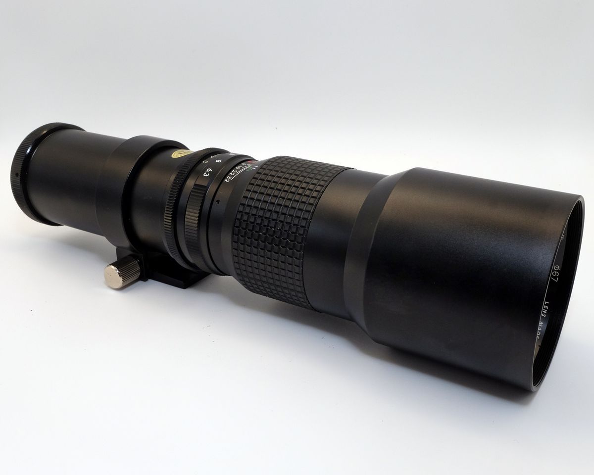 Wer das Objektiv damals gebaut hat, ist nicht wirklich geklärt, die Gravur lautet „Lens Made in Japan“ und es hat den bekannten gelben ovalen „JCII passed“-Aufkleber des „Japanese Camera Inspection Institute“. Man konnte es als Beroflex, Soligor, Danubia uvm. kaufen. Im Laufe der Jahrzehnte hat es verschiedene Versionen gegeben, mit 72 und 67 mm Filtergewinde, teilweise sind sie nicht aus japanischer Produktion, sondern möglicherweise aus Korea. Bei diesem Objektiv gibt es Qualitätsunterschiede, halt eine „Wundertüte“, bei der man nicht weiß, was man bekommt. Beim Kauf empfehle ich Rückgabegarantie, falls das gekaufte Exemplar eine „Gurke“ ist. Es ist ein „klassisches“ Fernobjektiv, also sehr lang gebaut.
