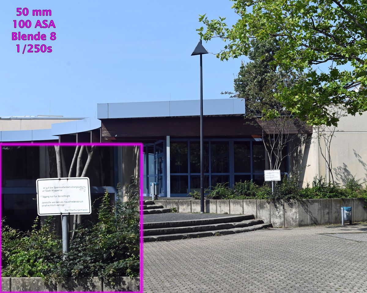 Das japanische Tessartyp-Objektiv zeigt alle typischen Eigenschaften dieser Bauart: geringe Verzeichnung, Unschärfe und Überstrahlung bei Offenblende und randscharfe Bilder an der Z5 erst ab Blende 8 bis 11. Früher auf Film genutzt sah es anders aus, bei dem auf schräge Randstrahlen gutmütiger reagierendem Film war in Verbindung mit den damals üblichen kleinen Vergrößerungen auf 7x11, 9x13 oder 11x15 cm reichte meist schon die Offenblende des Color Reflex Auto für das Fotoalbum völlig aus, gute Bilder ließ man sich damals aus Kostengründen lediglich auf 13x18 abziehen, 20x30 war schon teurer Luxus.