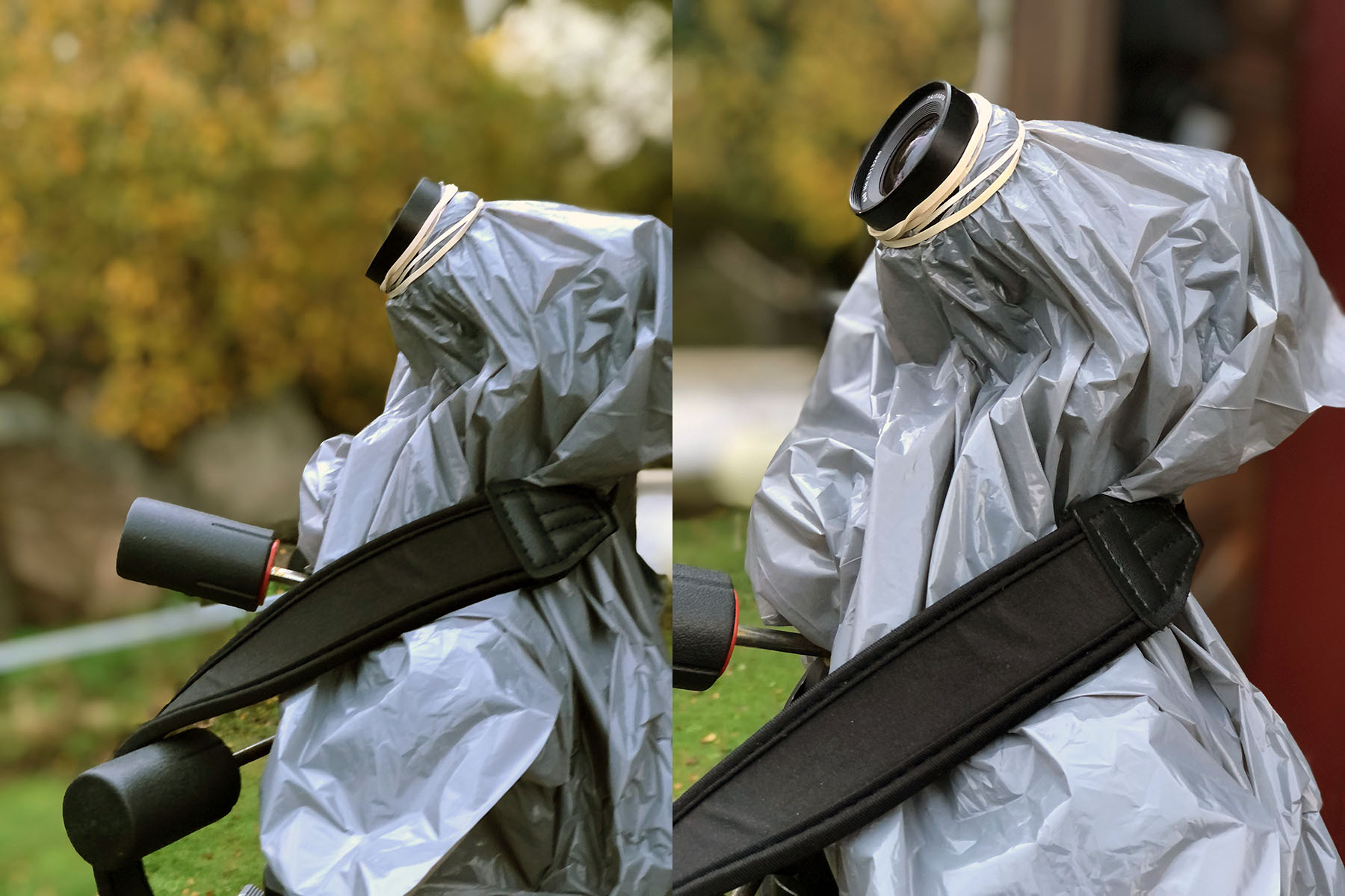 Bei keiner dieser Aufnahmen stand ich hinter der Kamera. Spätestens nach Mitternacht lag ich schlafend im Bett ;-) Immer Stativ, Timerstart nach Wahl und dann Intervallschaltung mit Auslösungen in festgelegten Abständen. Kamera wie gezeigt nach Wettervorhersage gegebenenfalls geschützt. Und dann Aussuchen am nächsten Morgen.
