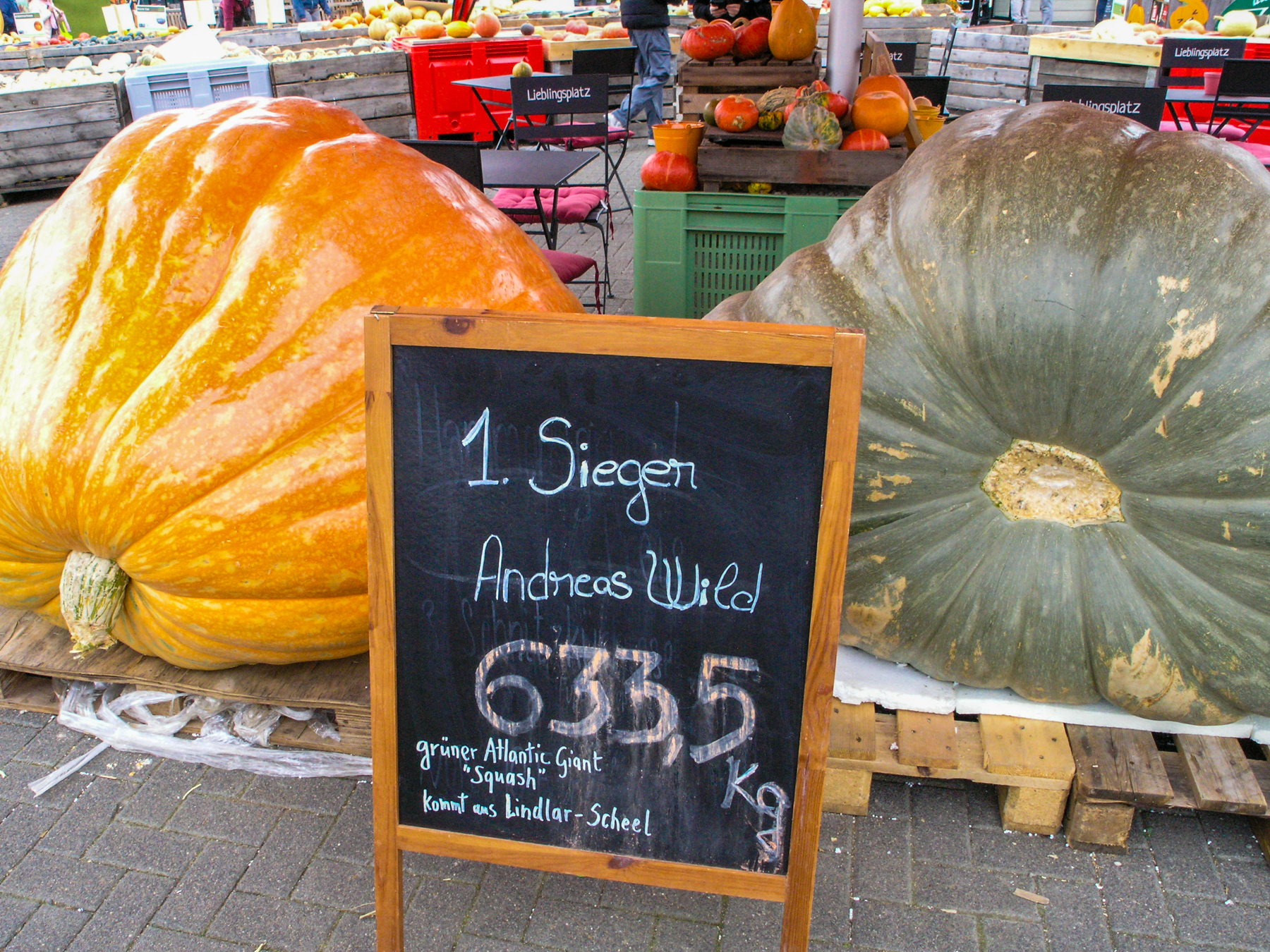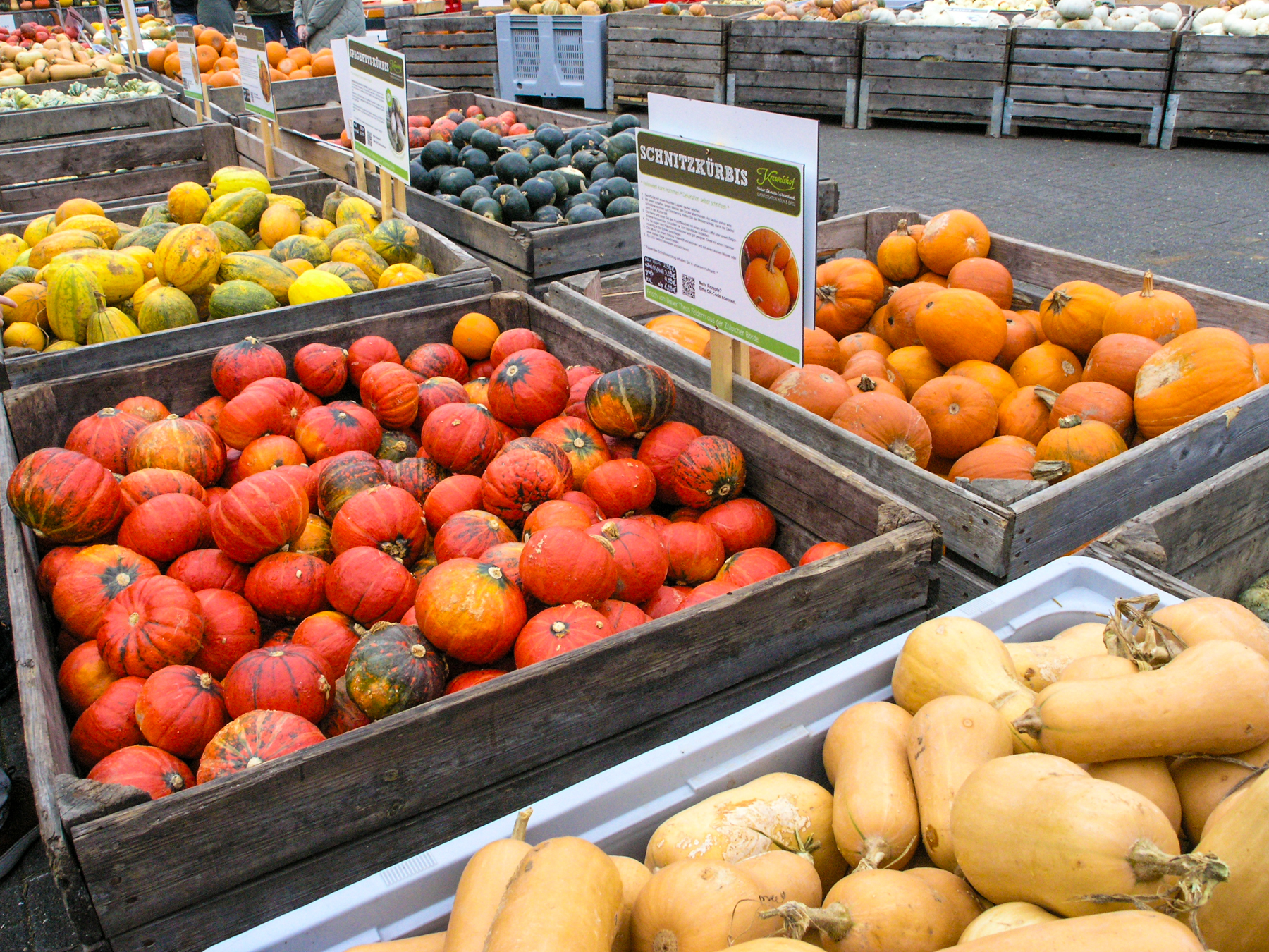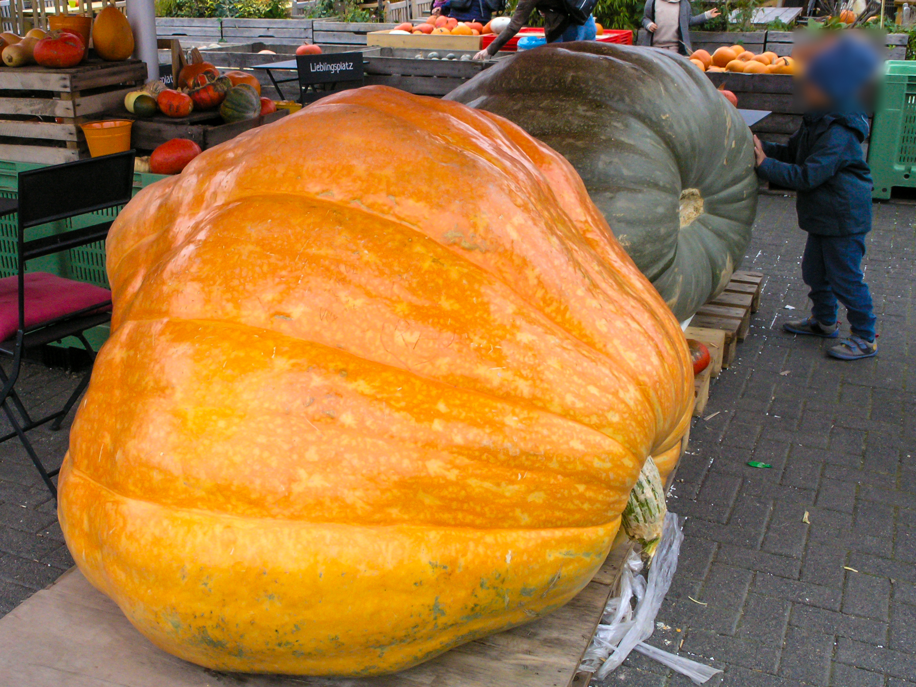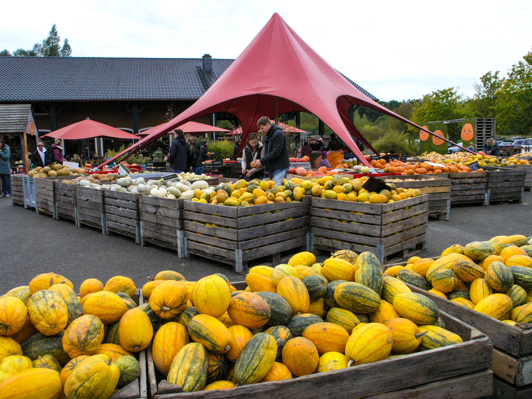 Lust hatte ich keine, und es ist Ewigkeiten her, als es das letzte Mal zu einem Bauernhof ging, der nicht nur einen entsprechenden Hofladen hat, sondern immer wieder Wettbewerbe veranstaltet: Wer präsentiert den größten, schwersten Kürbis? Es war ein weitgehend grauer, bedeckter Himmel. Die C-8080 wurde gleich auf ISO 250 gestellt. Speicherformat JPEG. Für die fehlende Sonne sorgte die Lightroom-Einstellung "Farbe/Kräftig". Bei ein paar Fotos Reduzieren des Rauschens besonders in den Tiefen und etwas Nachschärfung.