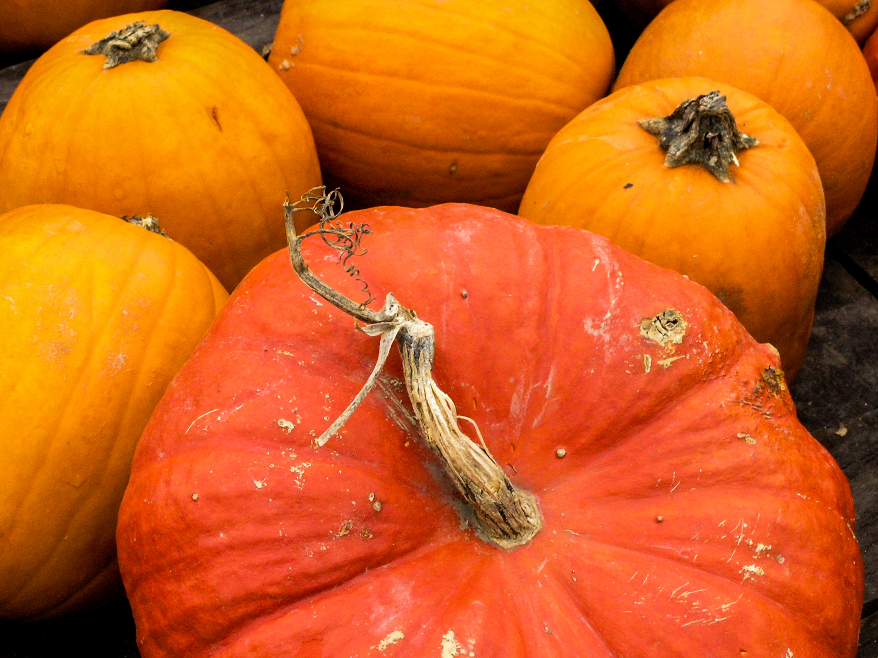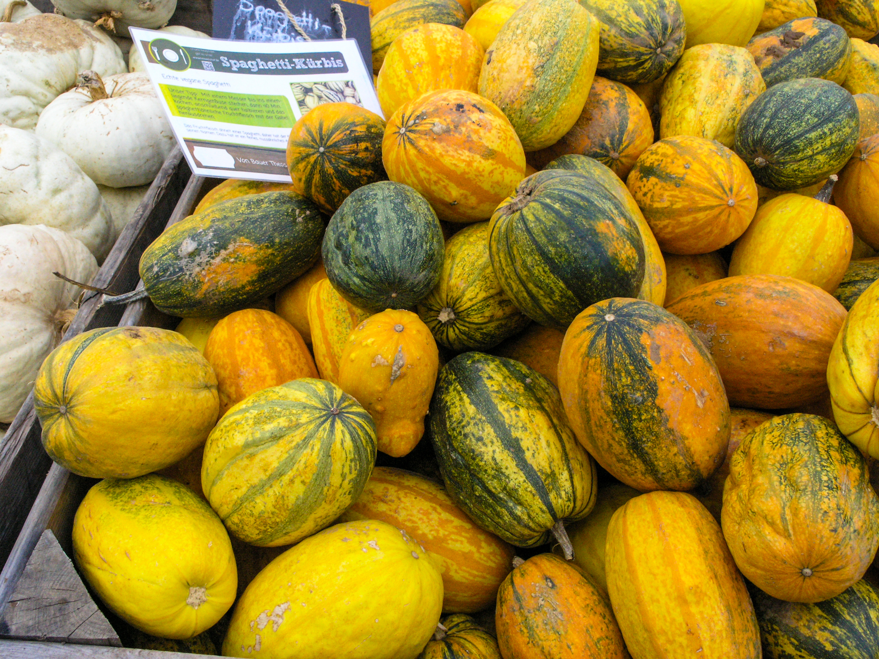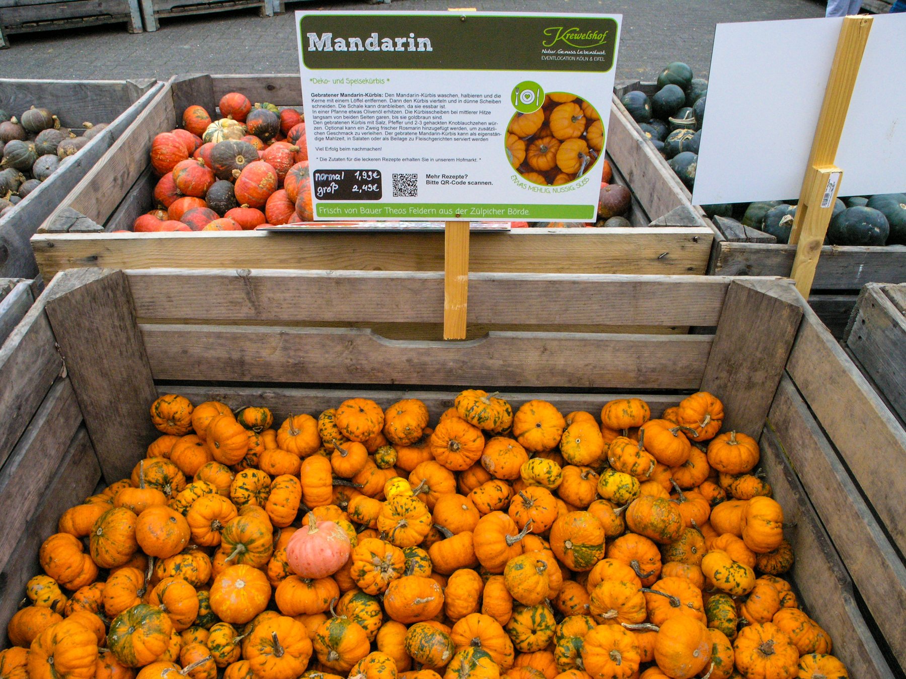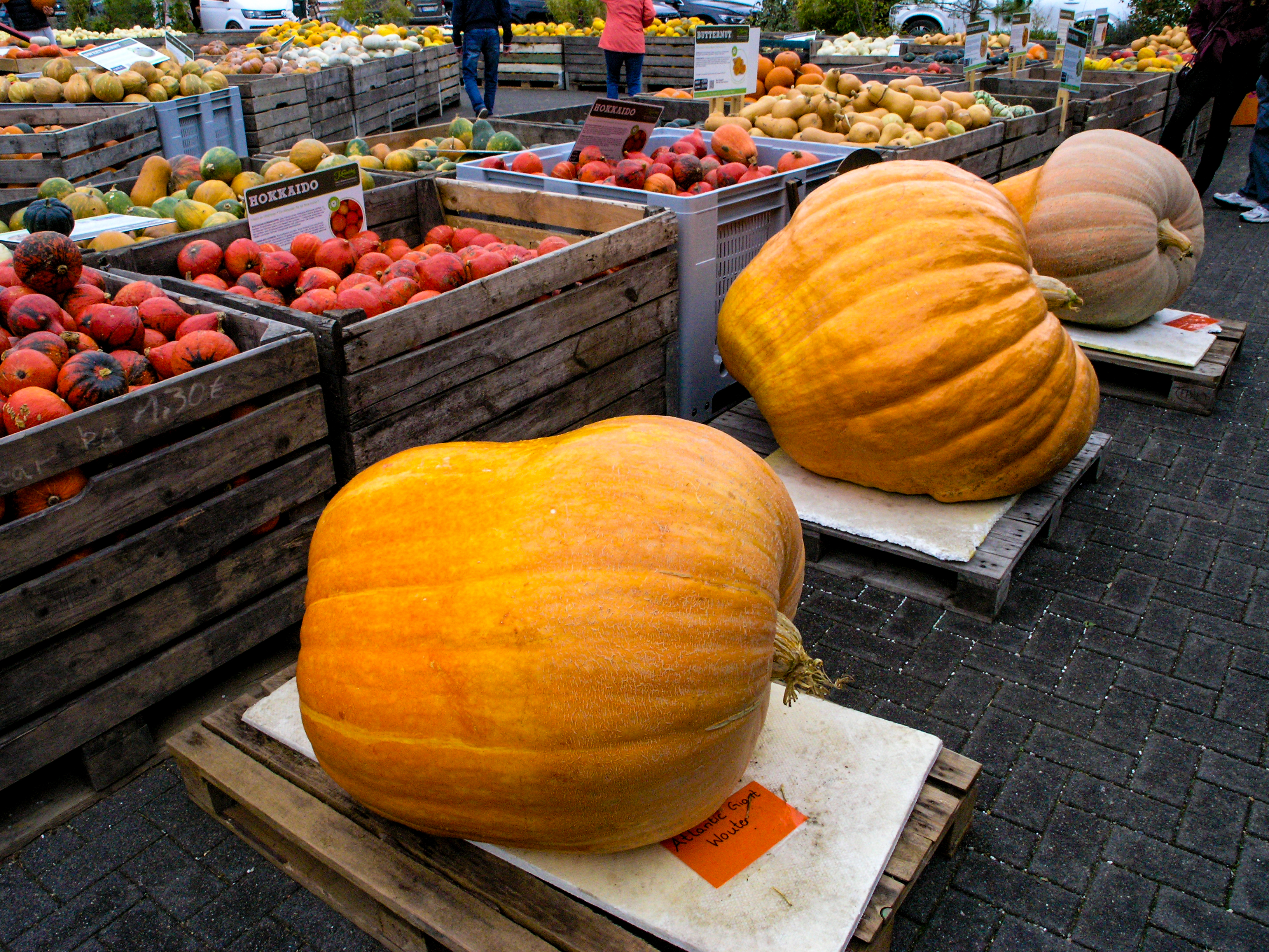 Lust hatte ich keine, und es ist Ewigkeiten her, als es das letzte Mal zu einem Bauernhof ging, der nicht nur einen entsprechenden Hofladen hat, sondern immer wieder Wettbewerbe veranstaltet: Wer präsentiert den größten, schwersten Kürbis? Es war ein weitgehend grauer, bedeckter Himmel. Die C-8080 wurde gleich auf ISO 250 gestellt. Speicherformat JPEG. Für die fehlende Sonne sorgte die Lightroom-Einstellung "Farbe/Kräftig". Bei ein paar Fotos Reduzieren des Rauschens besonders in den Tiefen und etwas Nachschärfung.