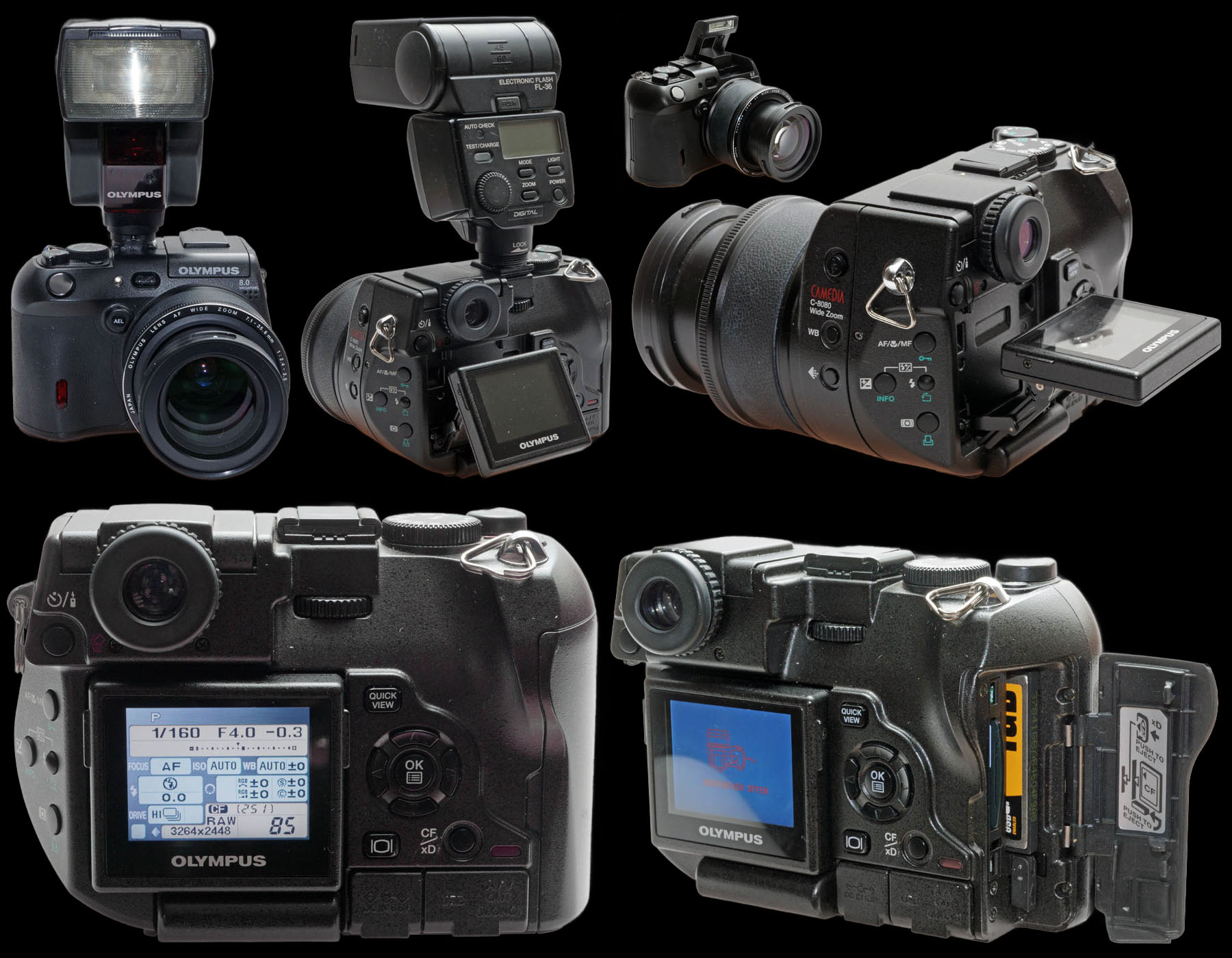 - Um 2004 mit der hier erneut gezeigten Camedia C-8080 Wide Zoom die Auflösung deutlich auf 8 Megapixel zu steigern.
