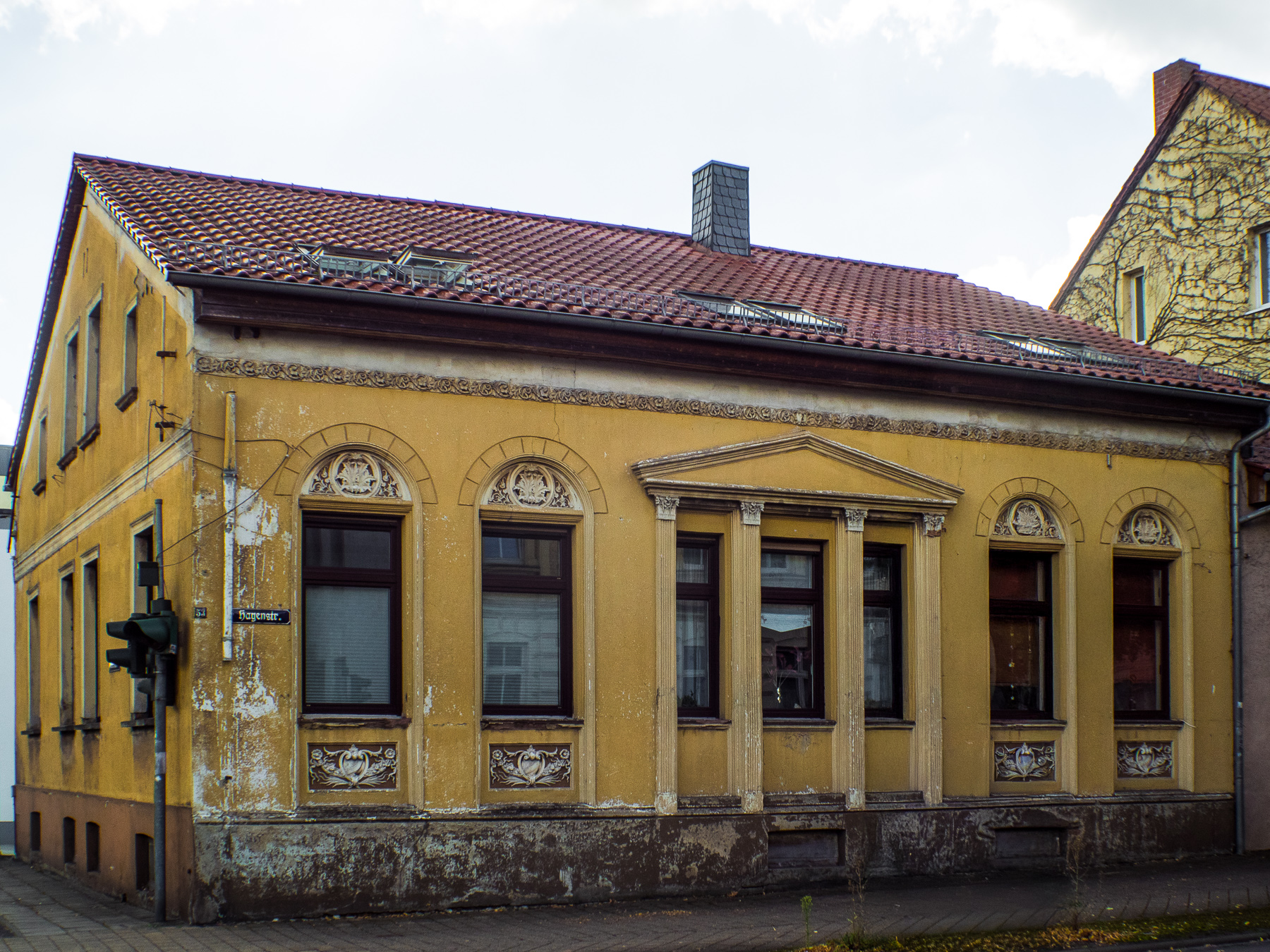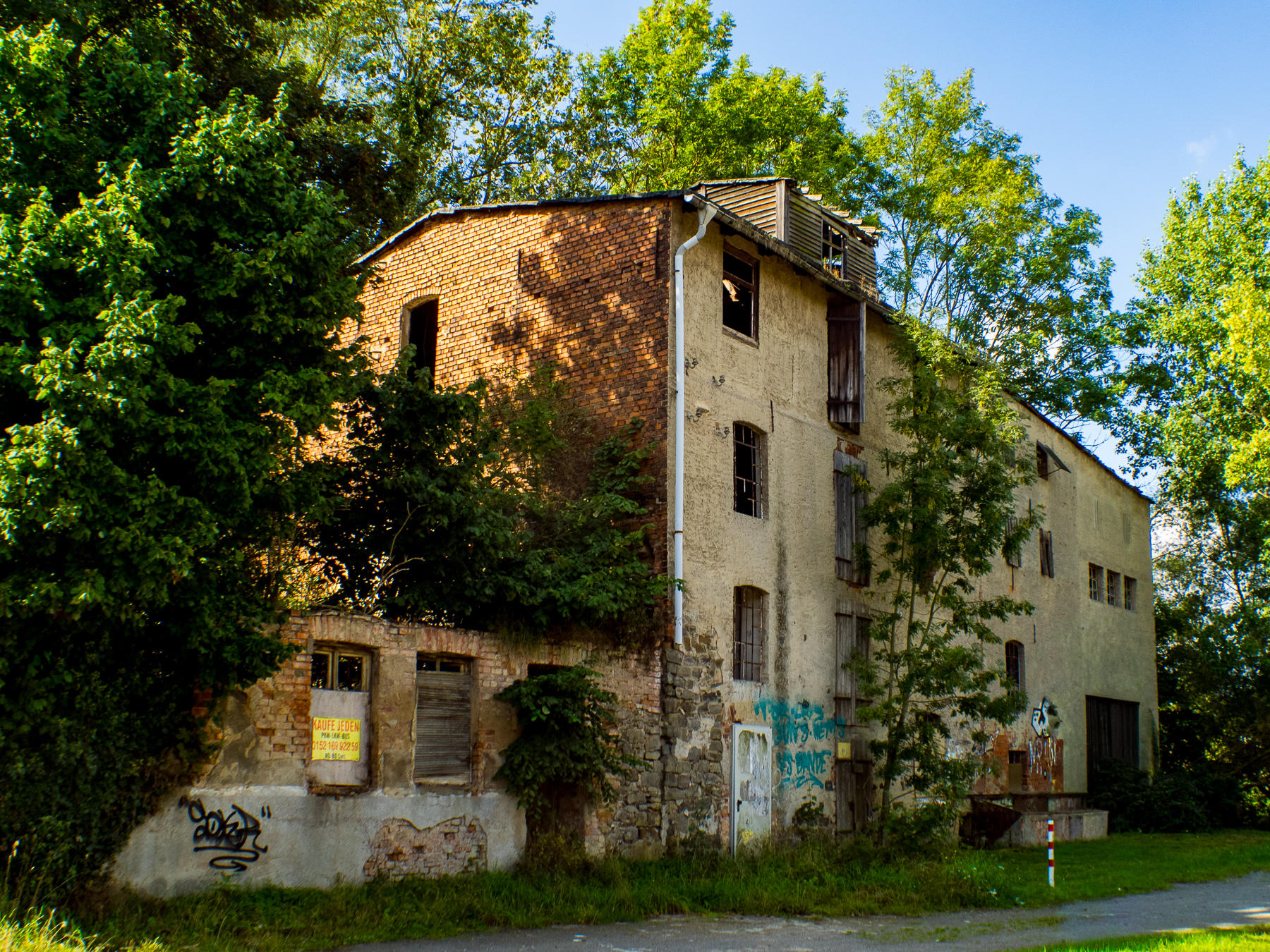 Es stand an die Pflichtfahrt zum 90. Geburtstag einer Großmutter im erweiterten Verwandtenkreis. Auf der Anfahrt gab es ein lange nicht mehr besuchtes Motiv, und in der Wohngegend der Großmutter liegen einige Motive, die man mal wieder ablichten könnte. Statt wie damals nur analog, jetzt hochaufgelöst digital. Um die Ausrüstung klein zu halten, ging für den Geburtstag die zierliche Olympus OM-D E-M1 mit dem OLYMPUS M.ZUIKO DIGITAL 12-50mm 1:3.5-6.3 EZ und dem Miniblitz FL-14 mit.