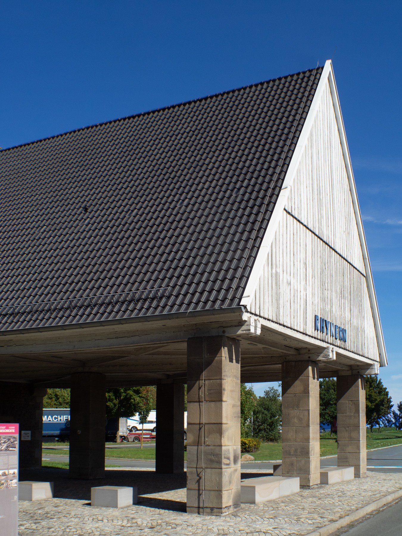 Auf der Hinfahrt in den Osten über die A2 nach Hannover und weiter Berlin noch dran vorbeigefahren, hat es auf der Rückfahrt für einen kurzen Stop gereicht: Die 1939 fertiggestellte Doppeltankstellenrastanlage Rhynern in Richtung West/Ost wie Ost/West steht seit 1990 unter Denkmalschutz. Dem leerstehenden Part in der Ost-West-Richtung der A2 wurde vom Evangelische Kirchenkreis Hamm 2007 neues Leben als „Tankstelle für die Seele“ eingehaucht. Sie beherbergt jetzt eine Kapelle. Nach den Vorgaben der Ende 1930er Jahre sollte die Ausführung der Tankraststätte nicht "modern" sein, sondern mit den steilen Satteldächern und hölzernen Giebelschildern einen Bezug zum rheinisch-westfälischen Bauernhaus herstellen. Nun ja, diese an Dach und Giebel erkennbare Bauart lässt eine kleine Ahnung, wie die Tankraststätte früher mal ausgesehen hat …