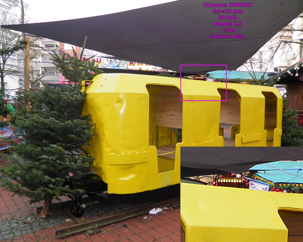 Die Bildqualität beider Kameras ist unterschiedlich, aber bei beiden nicht gut. Die 14 Megapixel der Olympus überschreiten den von mir festgestellten Grenzwert von 10 bis maximal 12 Megapixeln für Sensoren mit 1/2,3“. Hat ein Sensor mehr Megapixel, gehen die Details durch die Bildaufbereitung meist unter, das sieht man an den 20 Megapixeln der Coolpix deutlich. Hätte ich das Beispiel-Bild mit 10 Megapixeln aufgenommen und anschließend am Computer auf 20 Megapixel hochinterpoliert, sähe das Ergebnis kaum anders aus. Aber 2014 mußte eine neue Kamera einfach mehr Pixel haben, als eine von 2010, warum hätte denn sonst der potentielle Kunde den Mehrwert gesehen und Geld für einen Neukauf „lockergemacht“?