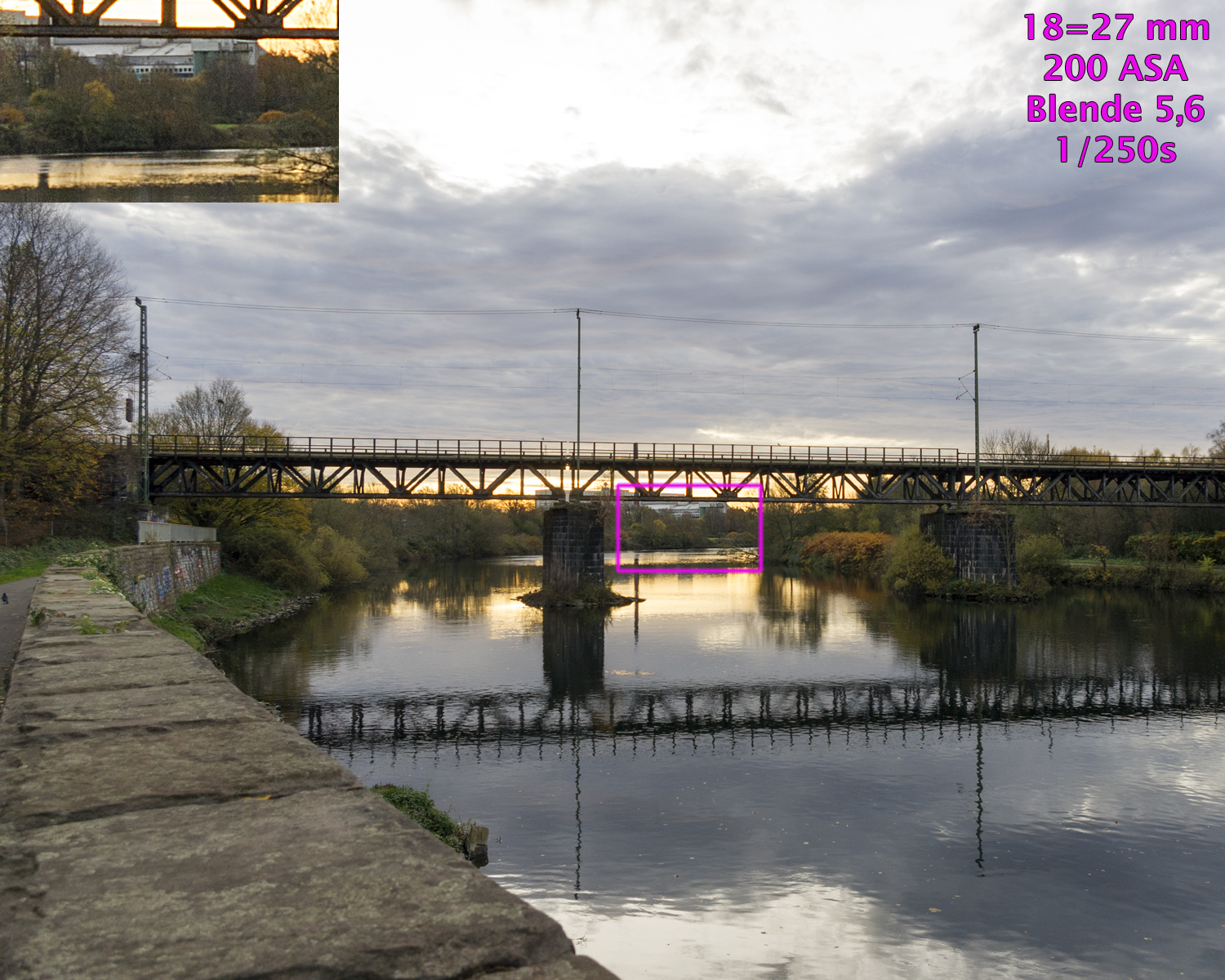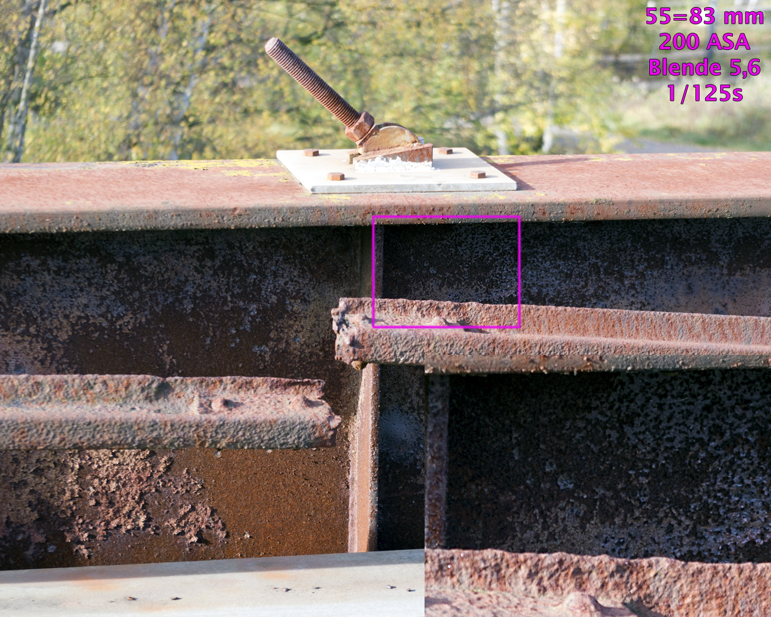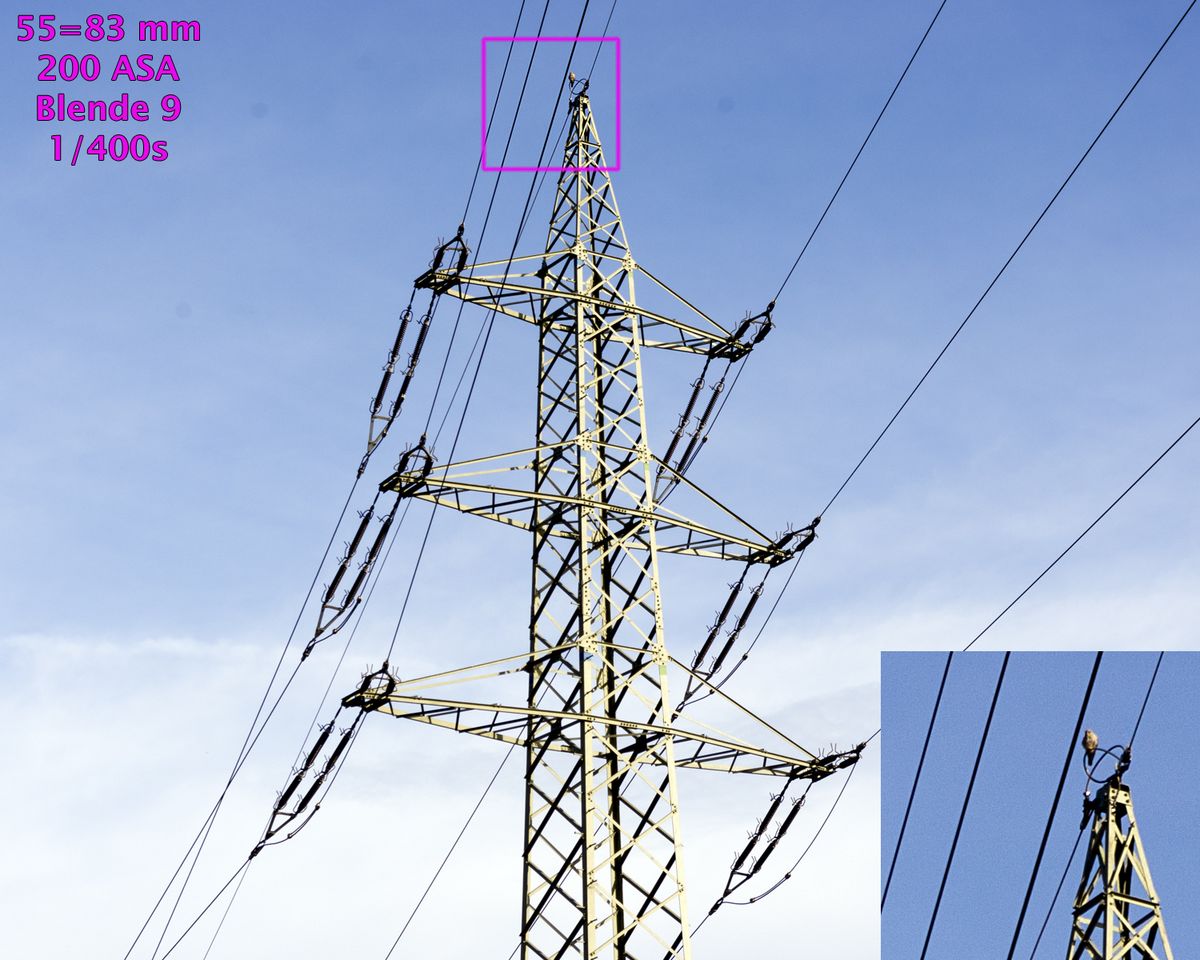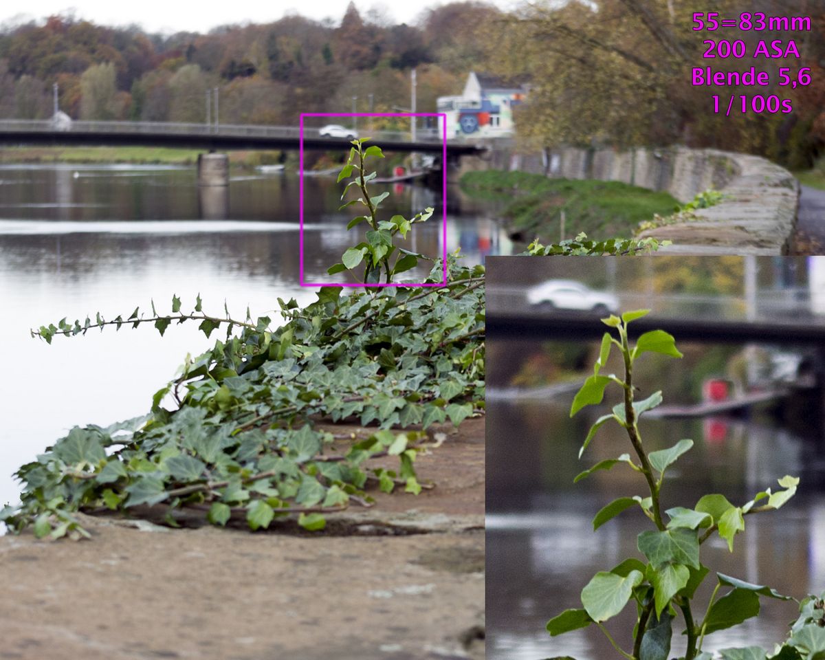 Das für den Check verwendete Setobjektiv ist im Telebereich leider teilweise unscharf bzw. die Kamera fokussiert „daneben“. Ich habe aber eher das Objektiv im Verdacht denn die Kamera, weil beispielsweise die linke Bildhälfte „matschig“ ist und die rechte Bildhälfte scharf abgebildet wird. Das spricht für eine Dezentierung von Linsengruppen, vermutlich hat sich im Inneren etwas leicht gelöst. Klappern kann ich nicht hören, aber die Unschärfe ist nicht auf allen Aufnahmen mit 55mm sichtbar gewesen und Weitwinkelaufnahmen waren „unverdächtig“.