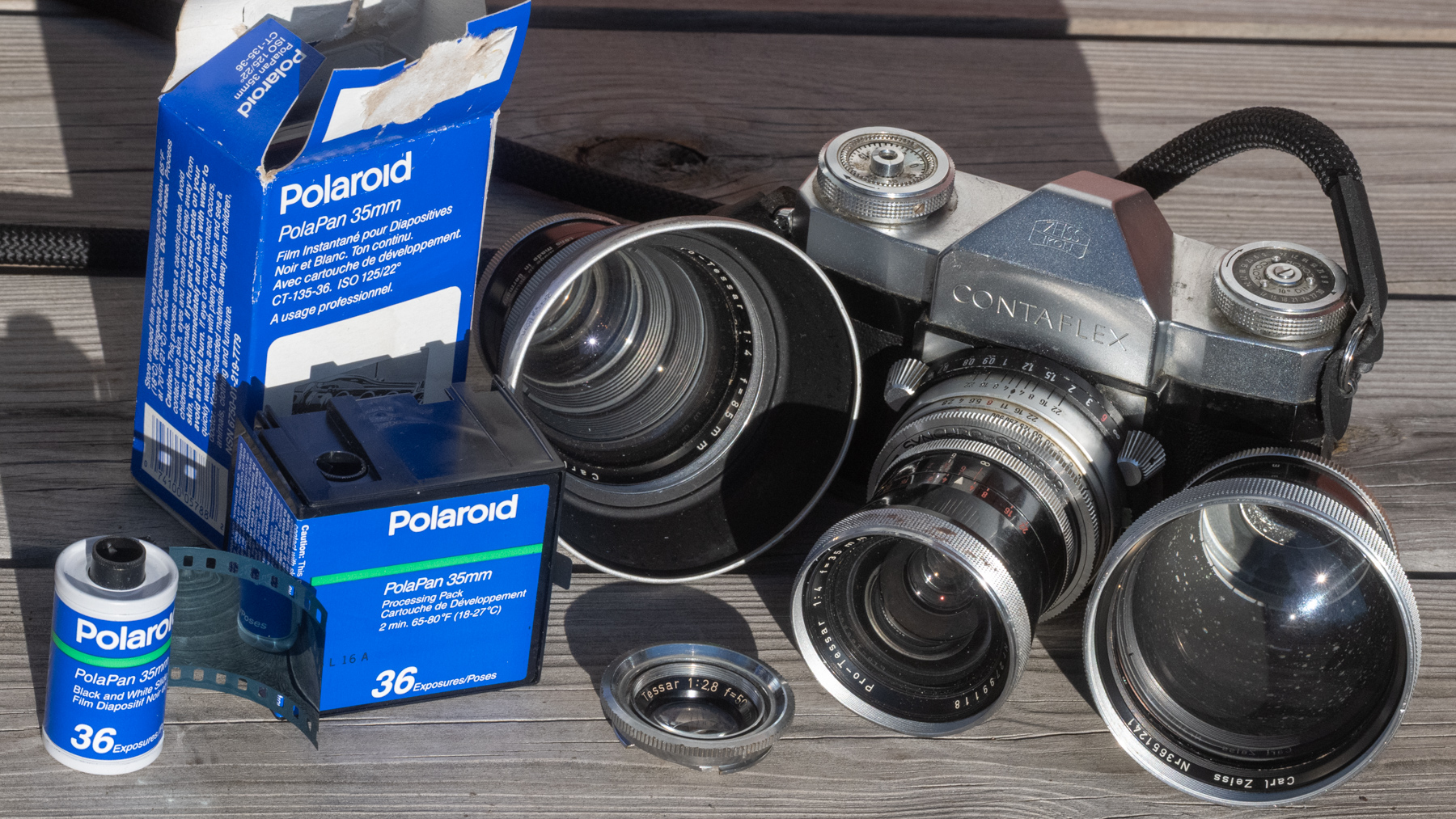 Natürlich aus Neugier, und um die nette Zeiss Ikon CONTAFLEX III damit zu laden. Zu der ich die drei Vorsatzobjektive Carl Zeiss Pro-Tessar 1:4 f=35 mm (Weitwinkel), Carl Zeiss Pro-Tessar 1:4 f=85 mm und Carl Zeiss Pro-Tessar 1:4 f=115 mm (Tele) habe. Um nach dem Fotorundgang mit der CONTAFLEX III zügig die Sofortbild-Dias zu haben!