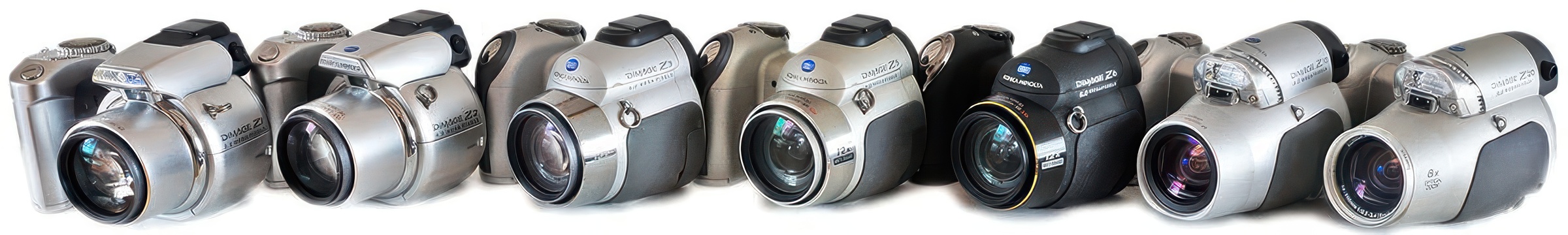 Nur als Modell Z1 hieß der Hersteller noch Minolta und löste 3 MP auf. Dann kam die Firmenfusion und fortan waren es Konica Minoltas: Z2 und Z3 mit 4 MP, die Z4 gab es nie, Z5 mit 5 MP, Z6 mit 6 MP und Z10 (3 MP) sowie Z20 (5 MP).