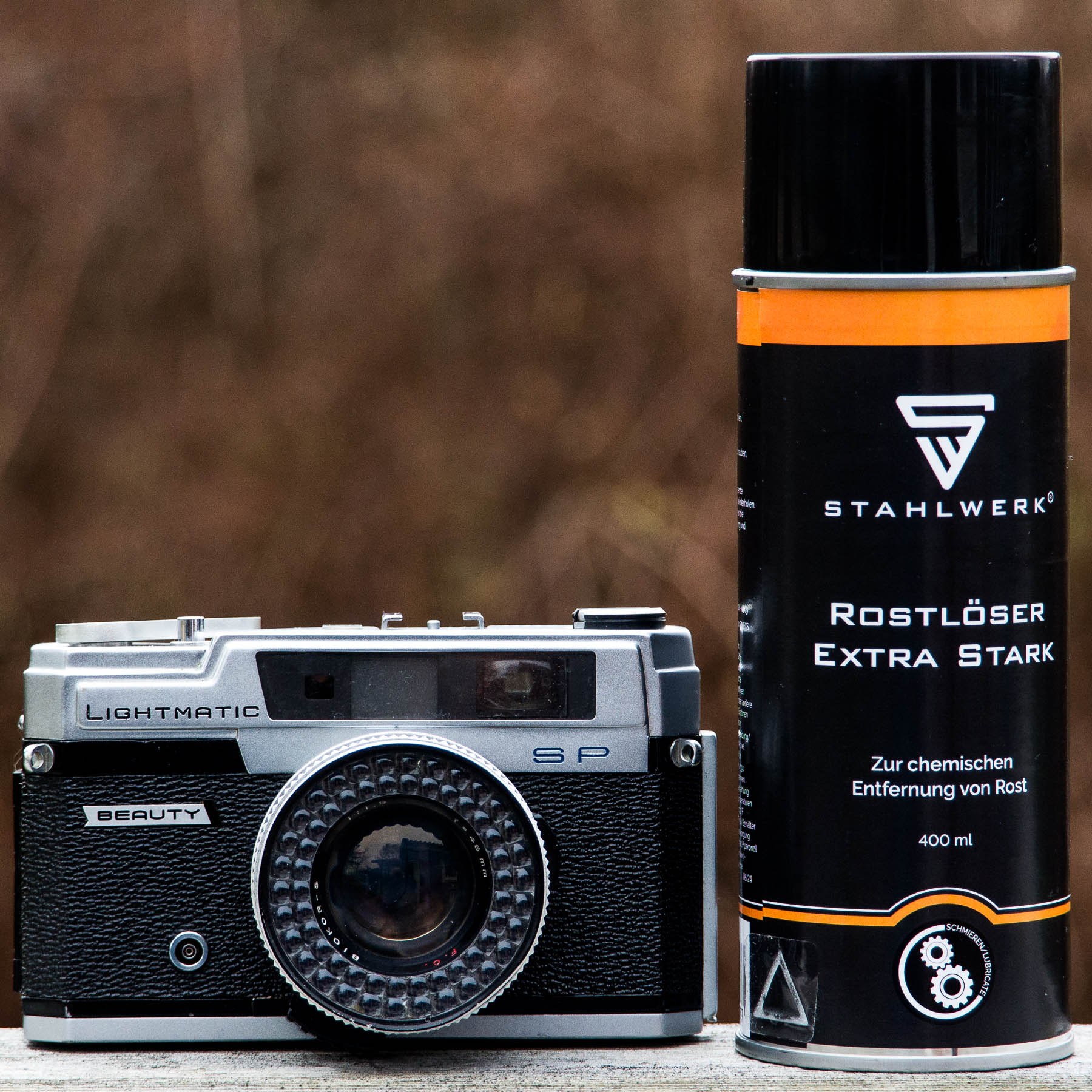 Mit Rost verbinde ich ja immer Eisen. Der abgebildete "Rostlöser" hat jetzt aber schon zweimal festsitzende, gefressene Aluminiumverbindungen lösen können. Normalerweise sagt man bei Aluminium: Gefressen ist wie veschweißt – unmöglich das zu lösen. Der "Rost"-Löser hat die Entfernungsenstellung der netten BEAUTY LIGHT MATIC SP Messsucherkamera, für die die phantastsische Nikon SP den Namen "spendierte", wieder gängig gemacht!