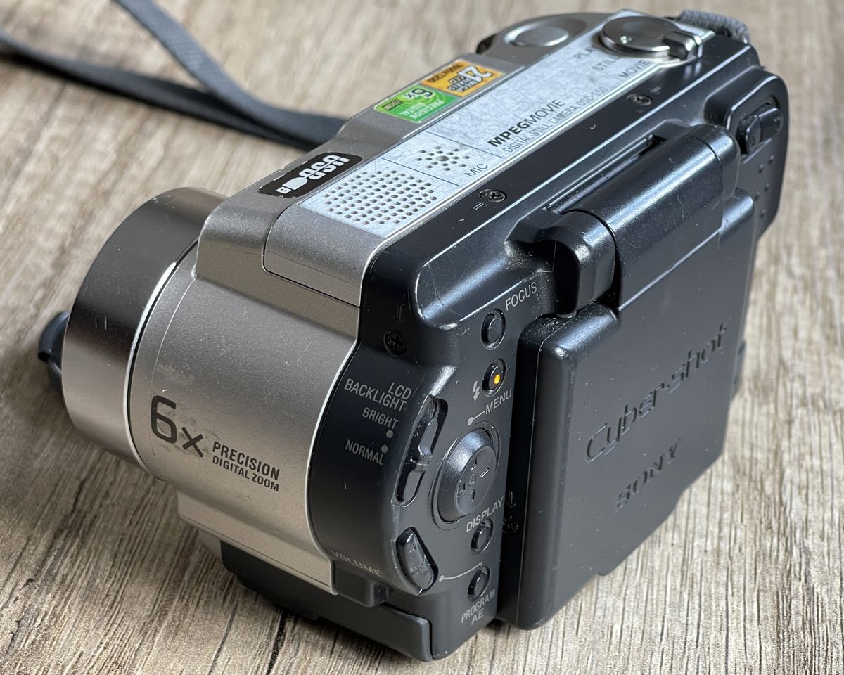 - Der 1/2,7“ (5,4x4,0mm) CCD-Sensor mit Pixelpitch 3,2µm löst maximal 1600 x 1200 Pixel = 2 Megapixel auf (Rohdaten 2,1 Megapixel). Die Empfindlichkeit ist unbekannt. Videos sind mit 320x240 Pixeln möglich. Bilder werden als JPEG auf MemoryStick (max.128 MB) gespeichert.